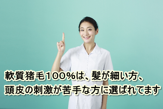 くせ毛の方に良いとされるのは、ナイロンとのミックスですが、実際はくせ毛の方もこちらの標準猪毛100%を選んでる方が多いようです。